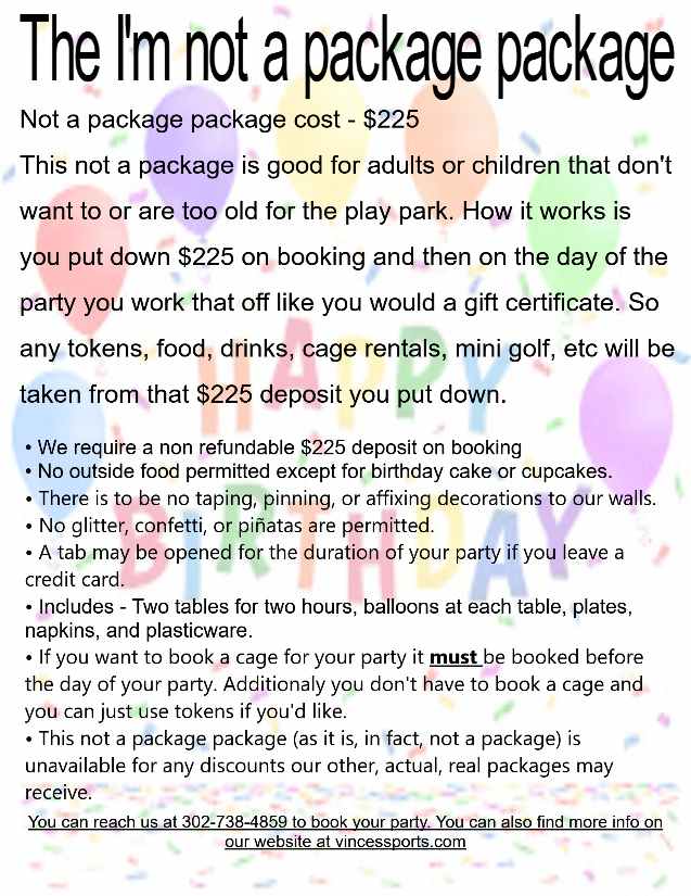 Below are the party packages we have for April to September 2026